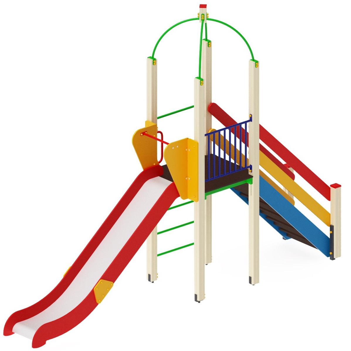 Горка 1500Скат горки шириной 530 мм, выполнен из нержавеющей стали толщиной 1,5 мм — цельного листа, утопленного в паз бортиков горки. Борта выполнены из влагостойкой фанеры толщиной 24 мм, шириной не менее 150 мм. Опорный каркас горки выполнен из профиля 40х25 и 30х30 мм. Стартовая площадка горки ограждена стальной перекладиной из трубы диаметром 27 мм, установлена на высоте не менее 600 мм от уровня поверхности стартового участка горки и побуждающая ребенка присесть. Размер горки в плане 540х2280х1500(h).
